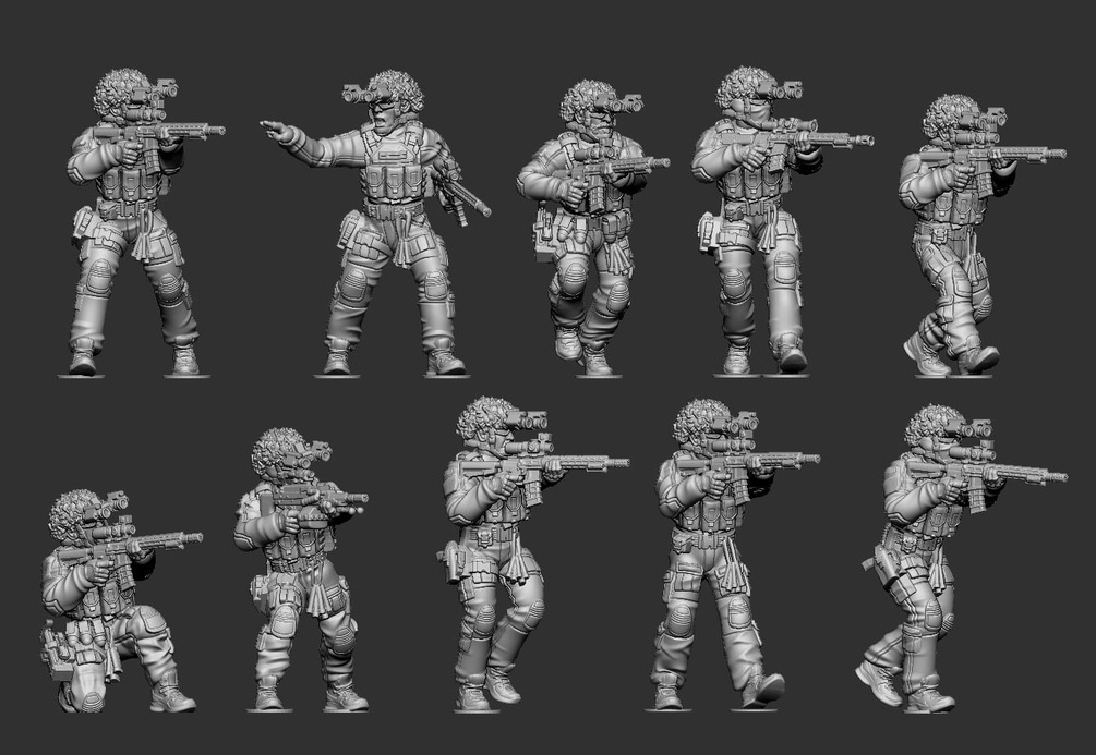 STLs to create 1 modular squad of British Infantry. This squad will be equipped with the UK's new service rifle, the KS1, LMT marksmen rifles and a gunner with the HK421 LMG.