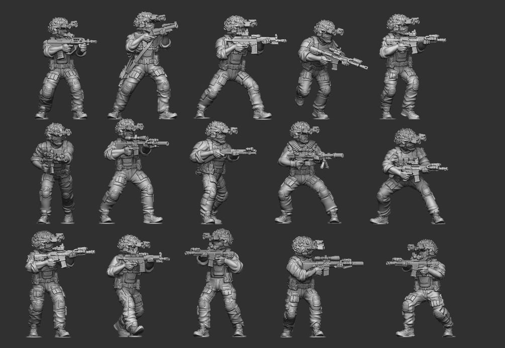 STLs to create a team of American Militia. Perfect for your "Red Dawn" scenarios. These guys will be rocking chest rigs and other military surplus gear. Firepower wise they will be carrying various .308 battle rifles, shotguns, old relic weapons and a captured M250 LMG.