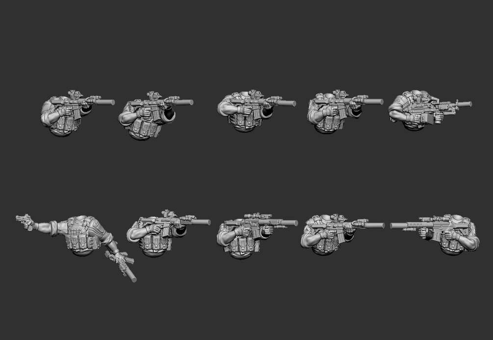 Included is options to assemble basic assaulters with HK416's to a dog handler. Again, included will be 11 different head sculpts, 10 leg options, 10 torso options and a tactical K9!